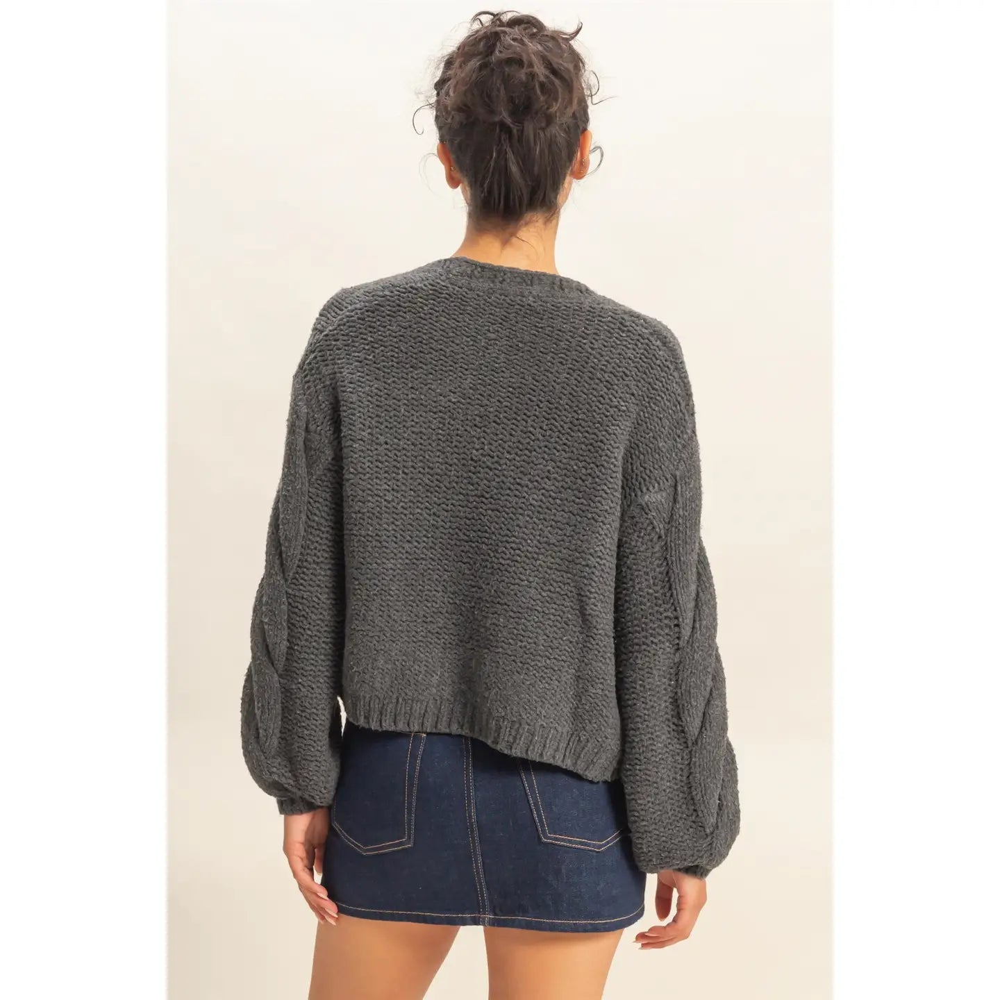 Embrace a relaxed silhouette with this cable knit cardigan sweater, perfect for versatile styling. Featuring a loose fit, drop shoulders, it ensures comfort and stylish. Ideal for layering over a turtleneck on chilly days, this piece complements jeans or leggings seamlessly, making it suitable for casual outings or cozy indoors.