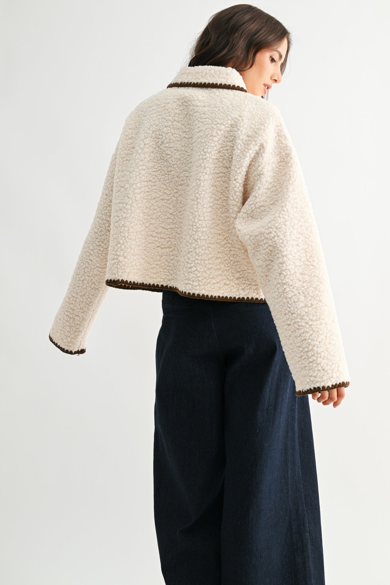 Stay warm and stylish with the Contrast Trim Sherpa Jacket,